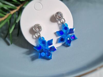 Glitzerohrringe „Pink-blaue Schneeflocken“