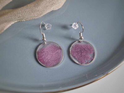 Elegante Ohrringe „Kreis mit pastellviolettem Glitzer“